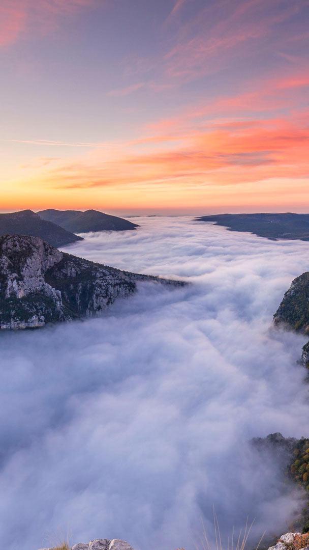 Stretching nearly 100 kilometres, the Verdon Gorge is Europe"s largest canyon, with majestic cliffs climbing up to 750 metres in height. The emerald hue of the Verdon River"s waters, hidden far below this blanket of clouds, lends its name to this spectacular natural site, shaped by millions of years of erosion. Visitors or residents of Alpes-de-Haute-Provence Hiking in the southeast of France can visit the canyon for rock climbing, kayaking, paragliding—the adventure options are endless. If you find yourself in Marseille or Nice, a day trip may be in order.