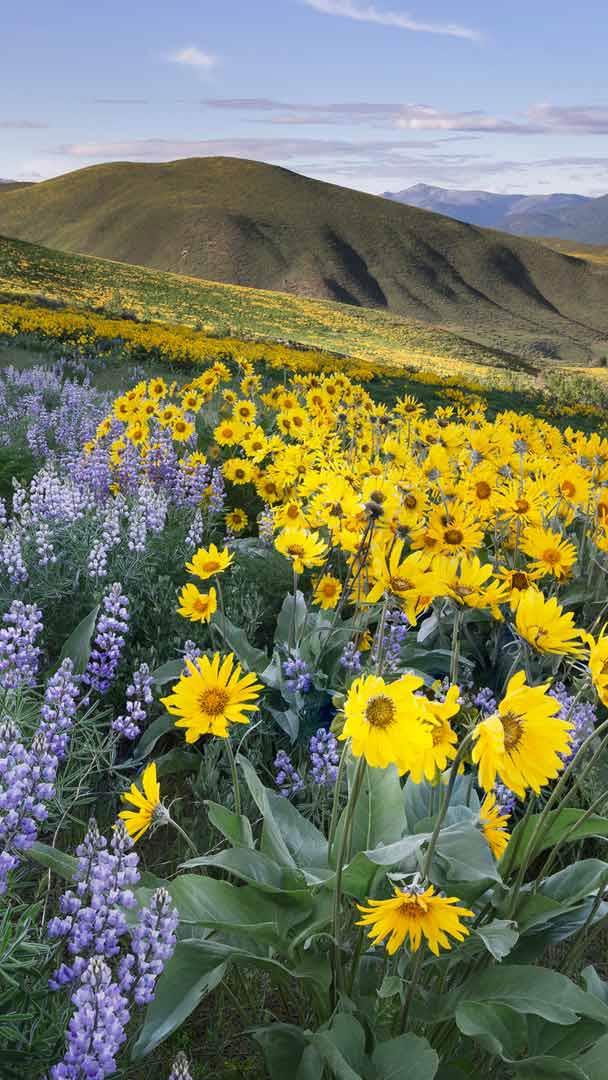 If you"re looking for meadows blanketed with vibrant beds of wildflowers, the Methow Valley in the North Cascade Mountains, Washington, USA is the place for you. Lupines, with their characteristic spiky blooms in purple, blue and white, and balsamroot, with its large, golden-yellow flowers, create a picturesque contrast with the rugged mountain backdrop. These flowers also play crucial roles in the valley"s ecosystem. Lupines are nitrogen-fixing plants; they help improve soil fertility by converting atmospheric nitrogen into a form that can be used by neighbouring plants. Balsamroot, on the other hand, attracts pollinators like bees and butterflies, which helps in plant reproduction and, in turn, contributes to the biodiversity of the region. Whether you"re a seasoned botanist or nature enthusiast, the wildflowers of the Methow Valley will surely leave a lasting impression of the enchanting wilderness.