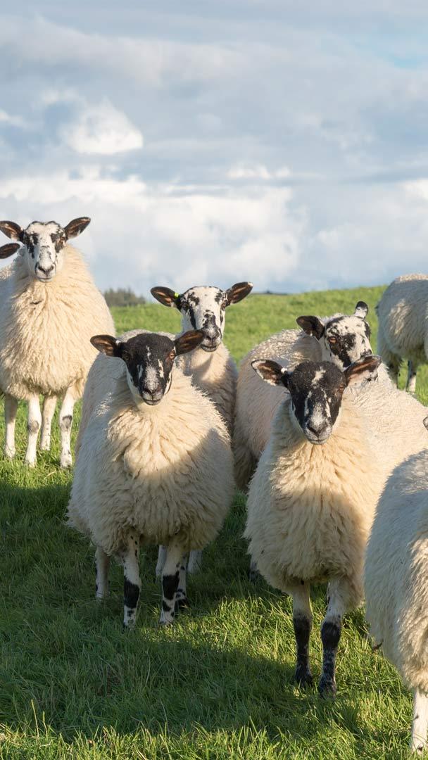 Swaledale sheep, found primarily in the Yorkshire Dales in England, are hardy and adaptable grazers. Recognisable by the distinctive white colouring around their nose and eyes and their curled horns, they produce coarse durable wool that is used for outerwear and rugs. Swaledale ewes are exceptional mothers, adept at rearing lambs even in the harshest conditions. This breed has become an emblem of the Yorkshire Dales, with the Swaledale ram proudly serving as the logo for the Yorkshire Dales National Park.
