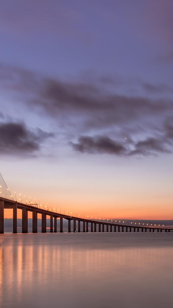 Do horizonte até à água Ponte Vasco da Gama, Lisboa, Portugal (© Achim Thomae/Getty Images)