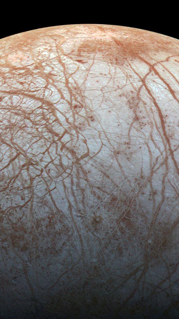 Uma lua azul Europa, a lua gelada de Júpiter (© NASA/JPL-Caltech/SETI Institute)