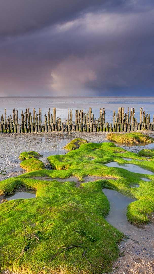 Entre o céu, as águas e os lamaçais Costa do Mar Frísio, perto de Moddergat, Friesland, Países Baixos (© Ron ter Burg/Minden Pictures)