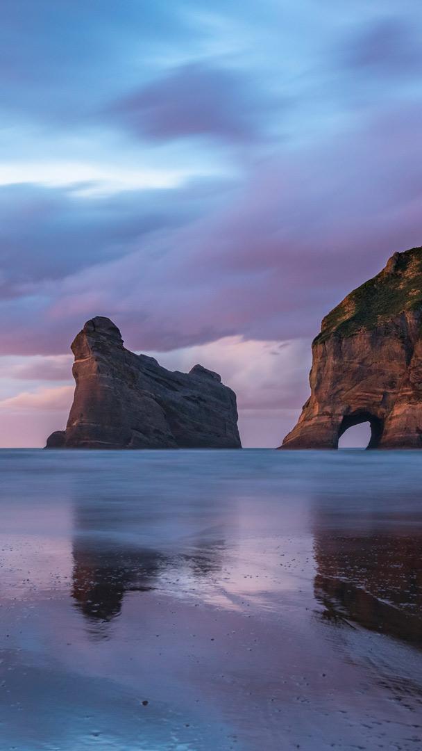 Um pacto entre dois mundos Ilha Archway, Praia Wharariki, Ilha Sul, Nova Zelândia (© Francesco Vaninetti/AWL/plainpicture)