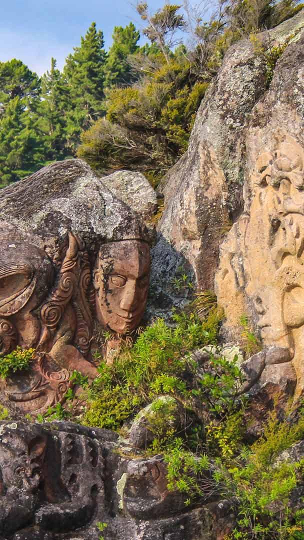 As raízes do amanhã Gravuras Maori em pedra na Mine Bay, Lago Taupo, Nova Zelândia (© Joppi/Getty Images)
