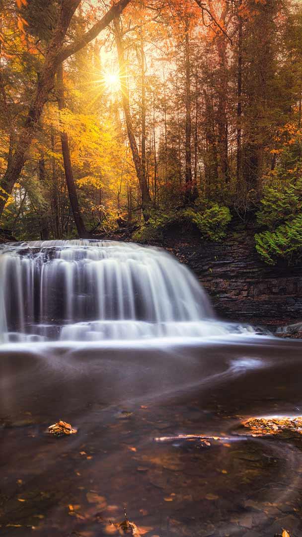 Trilhas moderadas, beleza profunda Rock River Falls, Península Superior, Michigan, EUA (© Matt Anderson Photography/Getty Images)