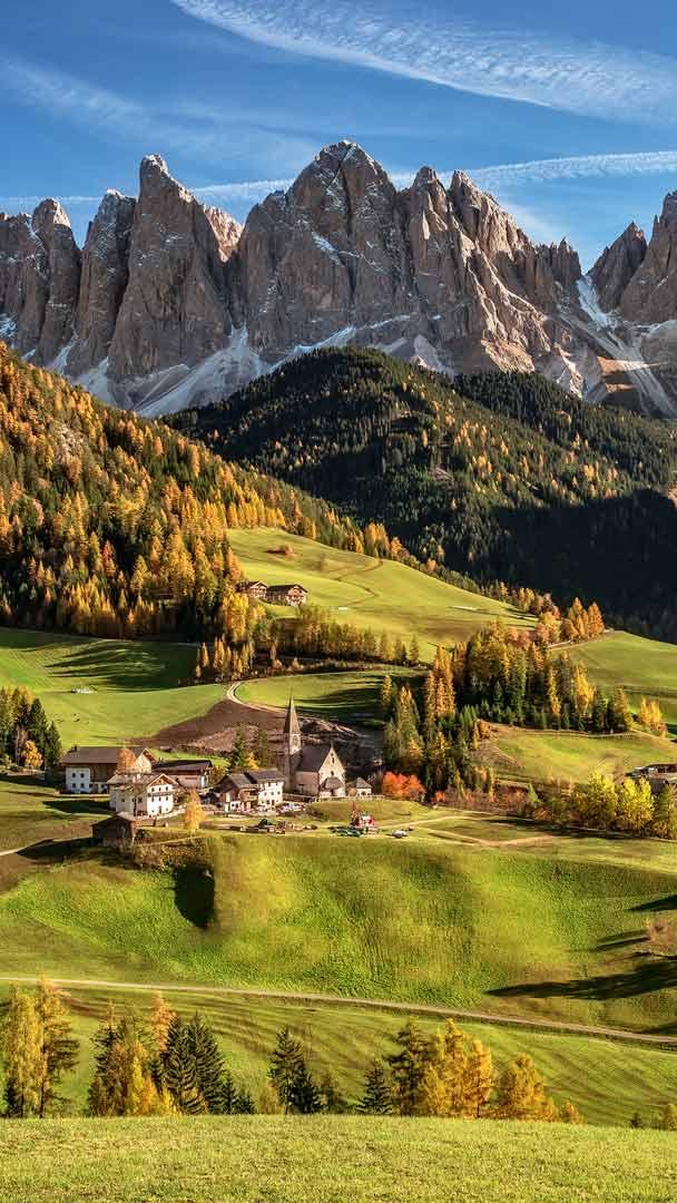 Vida em cidade pequena, elevada! Val di Funes, Tirol do Sul, Itália (© Achim Thomae/Getty Images)