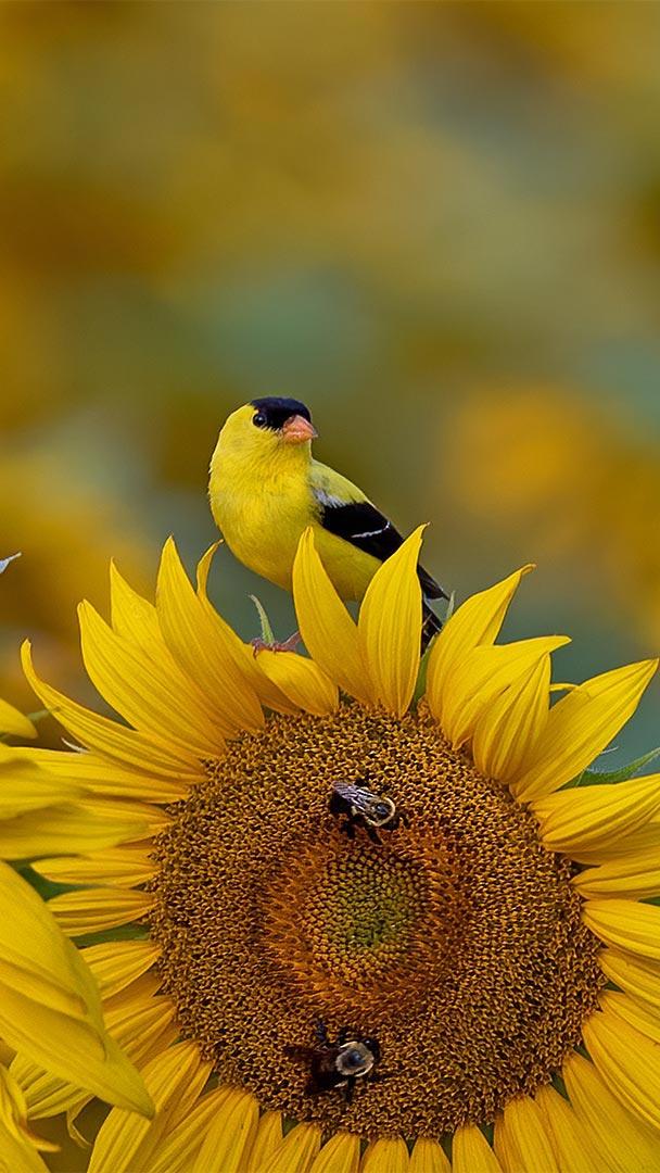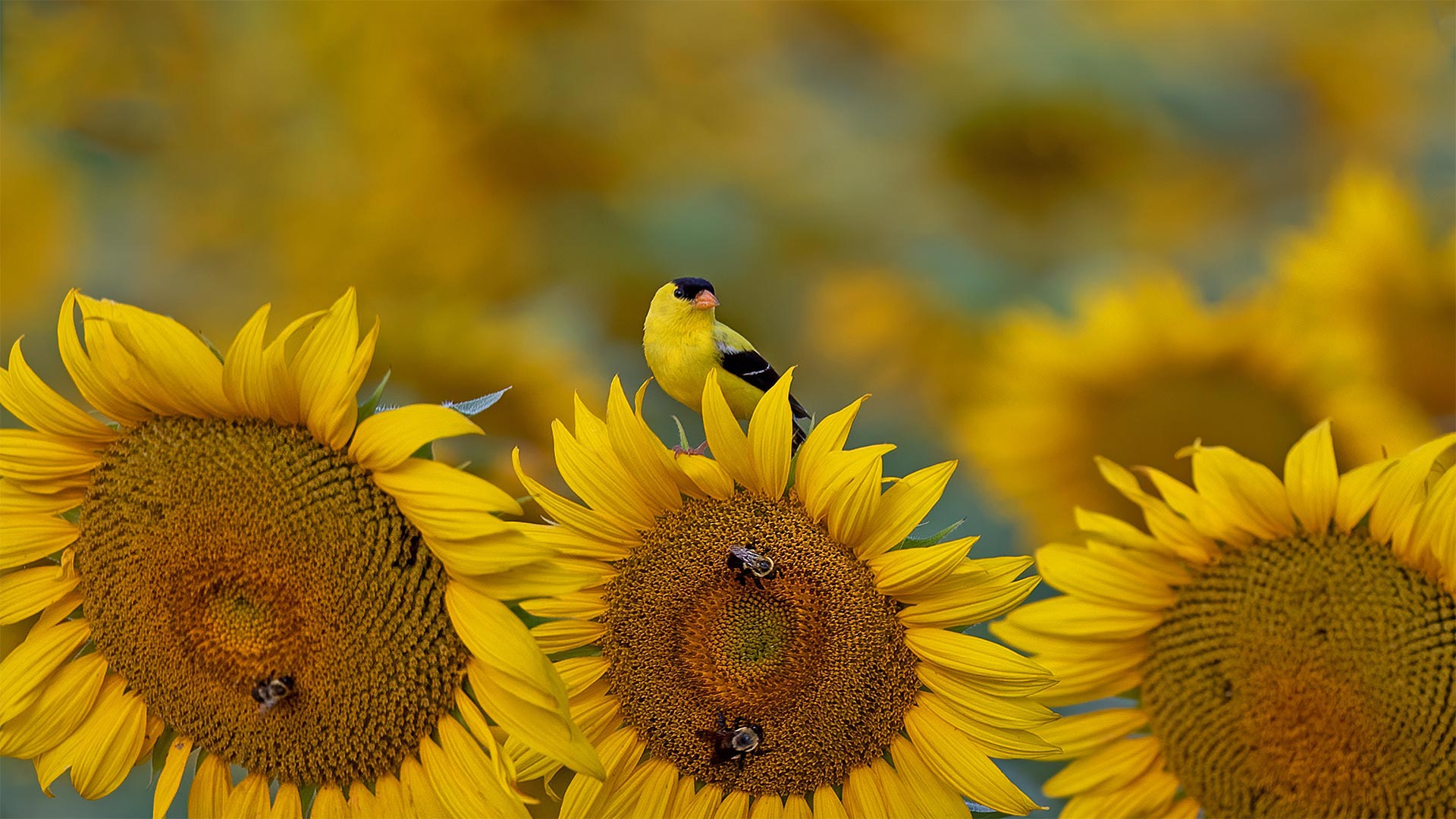 The ‘potato chip bird’ Goldfinch on a sunflower in McConnells, South Carolina (© Teresa Kopec/Getty Images)