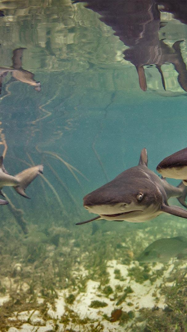 Sharks, just living their lives Baby lemon sharks swimming among mangroves near Alice Town, Bimini, Bahamas (© Ken Kiefer 2/Getty Images)