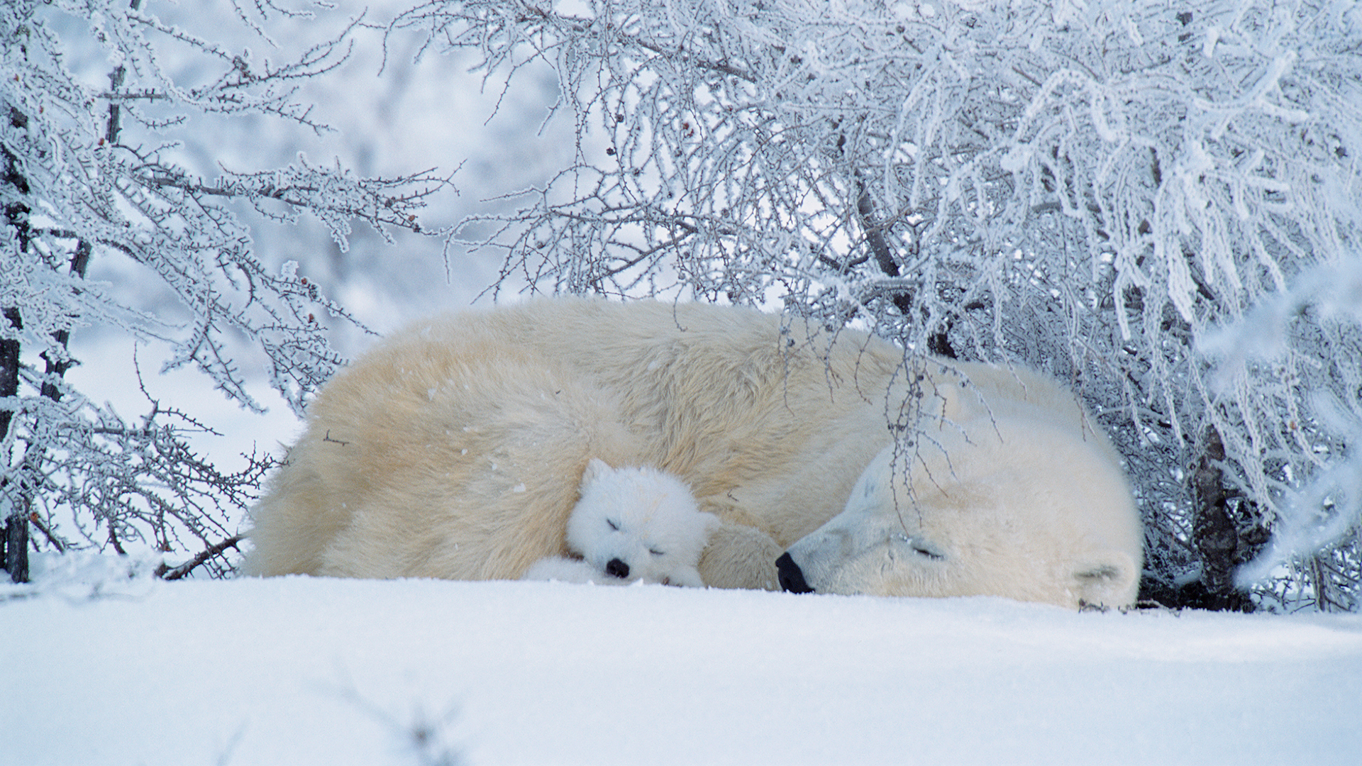 冰冷的北极,温暖的拥抱 北极熊在加拿大沉睡 (© David Pike/Minden Pictures)