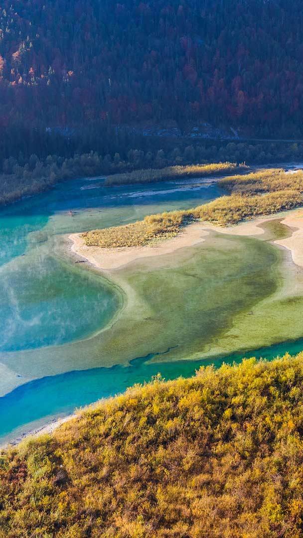 美丽清澈的河流 伊萨尔河鸟瞰图,德国伦格里斯 (© Martin Siepmann/Offset/Shutterstock)