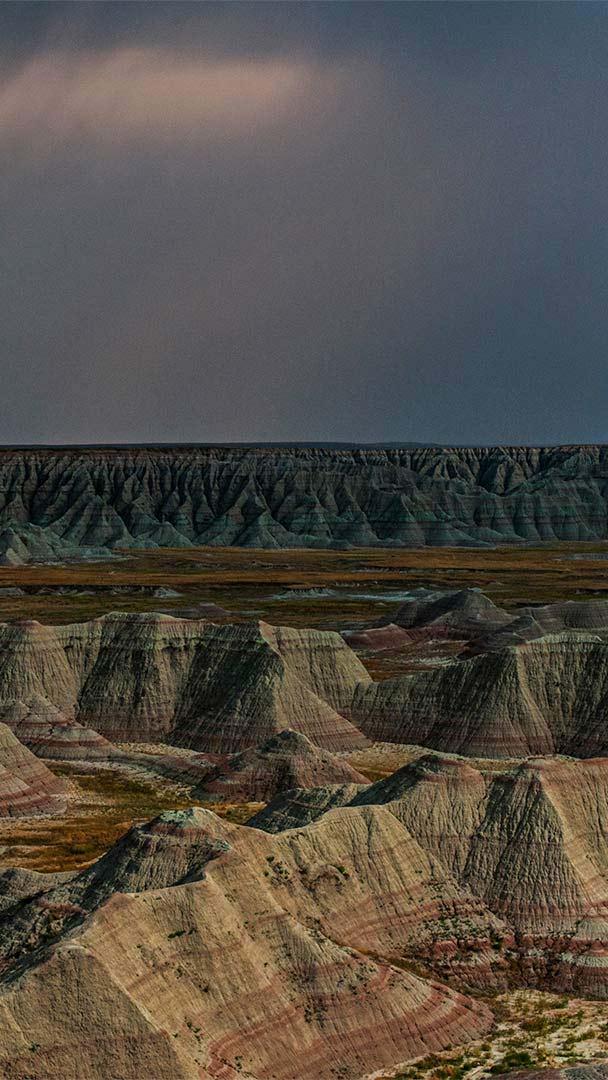 恶地国家公园的一场闪电? 雷暴中恶地国家公园的岩层,美国南达科他州 (© DEEPOL by plainpicture)