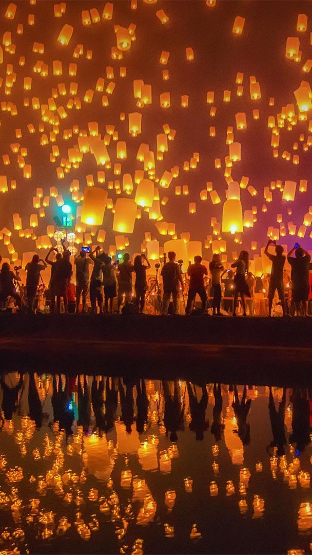 祝福和祈愿的日子 清迈易鹏节升起的天灯,泰国 (© Suttipong Sutiratanachai/Getty Images)