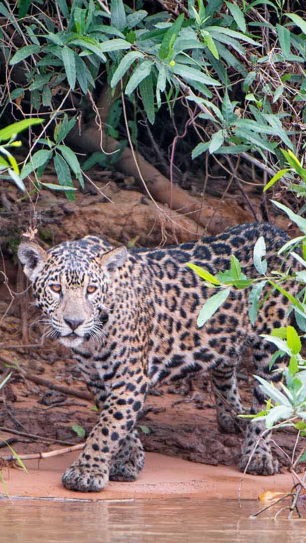 巧妙的伪装 河岸上的一只年轻美洲虎,潘塔纳尔,巴西 (© Tambako the Jaguar/Getty Images)