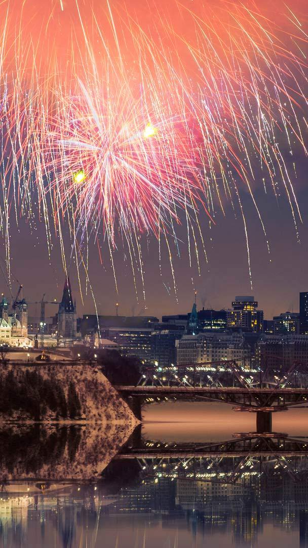 新年快乐! 国会山上空的烟花,渥太华,加拿大 (© naibank/Getty Images)