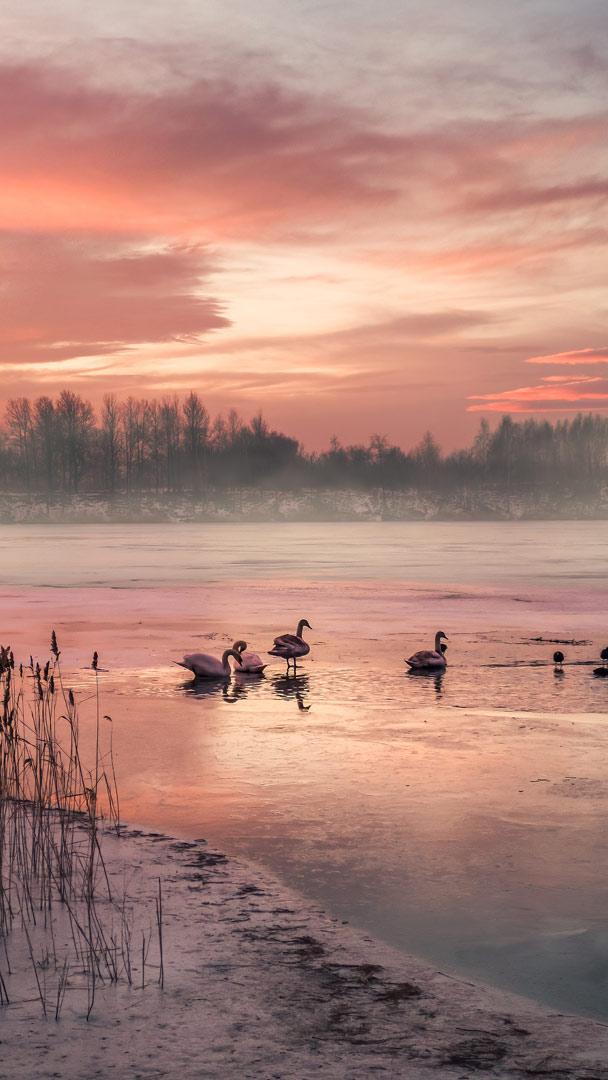 Gefrorener See bei Wintersonnenaufgang, Deutschland © Marc_Osborne/Getty Images