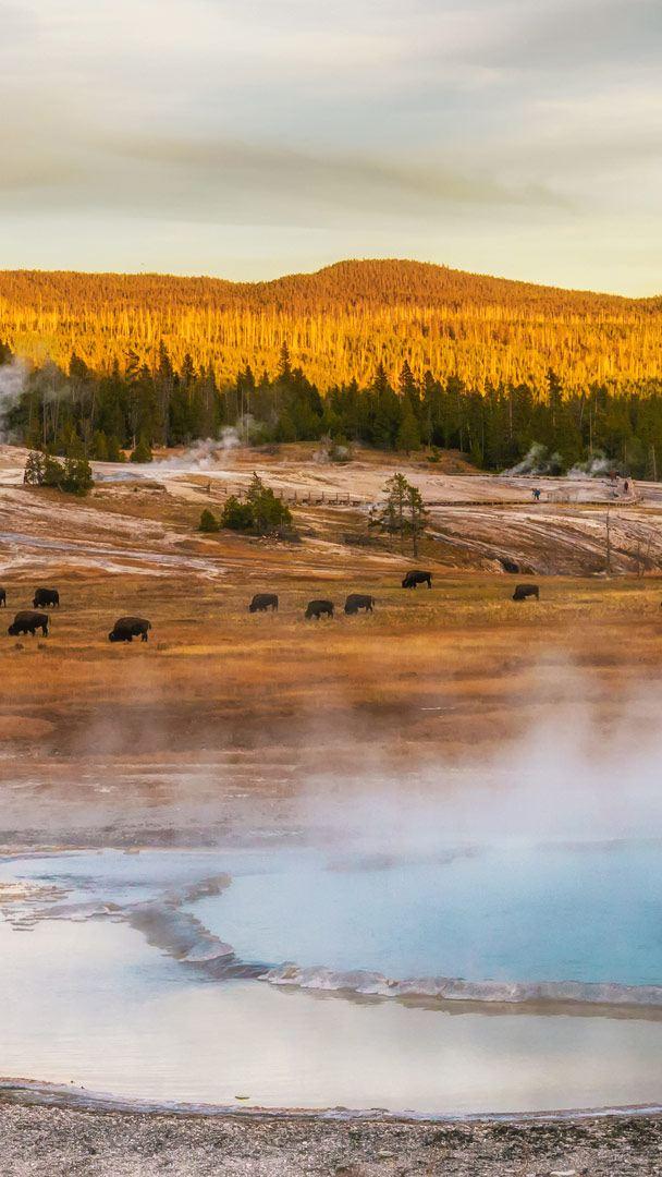 Dampf steigt aus der Erde, die Luft riecht nach Schwefel – und mitten in dieser mystischen Landschaft grasen Bisons. Der Yellowstone-Nationalpark im Nordwesten der USA liegt größtenteils im Bundesstaat Wyoming und ist berühmt für seine heißen Quellen, Geysire und dampfenden Schlammbecken. Diese geothermischen Wunder entstehen durch vulkanische Aktivität unter der Erdoberfläche – ähnlich wie in der Vulkaneifel in Rheinland-Pfalz, wo über 350 ehemalige Vulkane und Maarkrater bis heute von der bewegten Erdgeschichte zeugen.