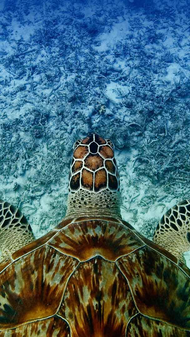 Gelassen im azurblauen Wasser schwimmen Echte Karettschildkröte schwimmt in der Nähe von Aka-jima, Okinawa, Japan (© Robert Mallon/Getty Images)