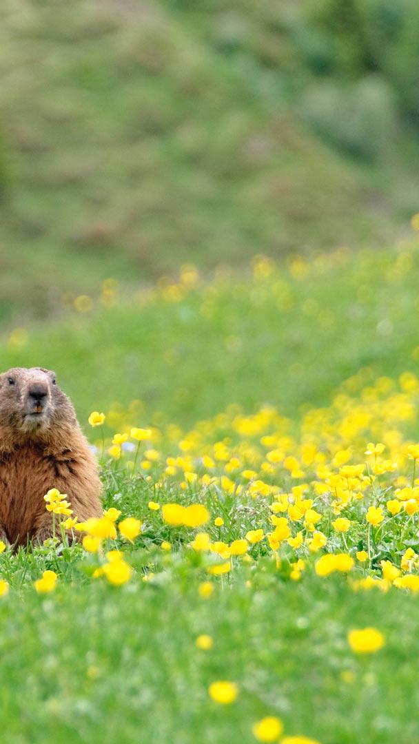 Imaginaos por un momento asomándoos desde vuestra propia casa bajo tierra, como lo hace curiosamente una marmota desde su madriguera. Estos roedores de mirada vivaz son parientes lejanos de las ardillas, pero les superan en tamaño, alcanzando hasta 8 kg, y lucen una densa capa de pelo que los abriga en las frías regiones montañosas donde residen, como los Alpes y los Pirineos.
