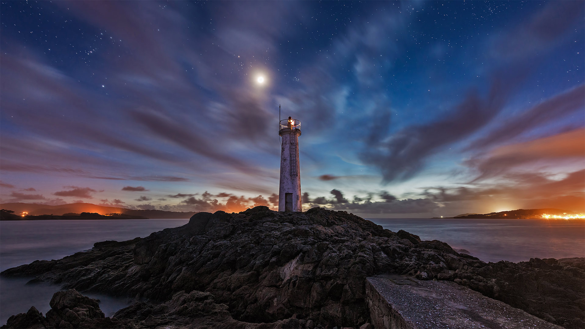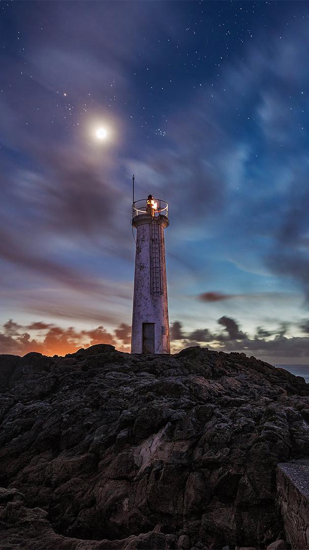 Lumière dans la nuit Faro de Playa Lago, Costa da Morte, Muxía, Galice, Espagne (© Carlos Fernandez/Getty Images)