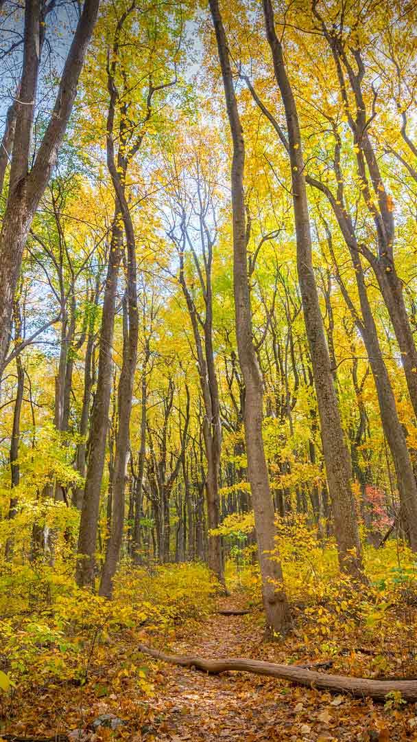 Niché au cœur des Blue Ridge Mountains, le parc national de Shenandoah s"étend sur plus de 809 km2. Alors que l"été tire sa révérence, le parc se transforme et dévoile son plus beau chapitre : l"automne. Les feuilles se parent de leurs plus beaux habits - rouges, oranges et dorés - pour créer un spectacle grandiose. La Skyline Drive, une route de 169 kilomètres qui traverse le parc, vous permet d"être aux premières loges, avec plus de 75 points de vue.