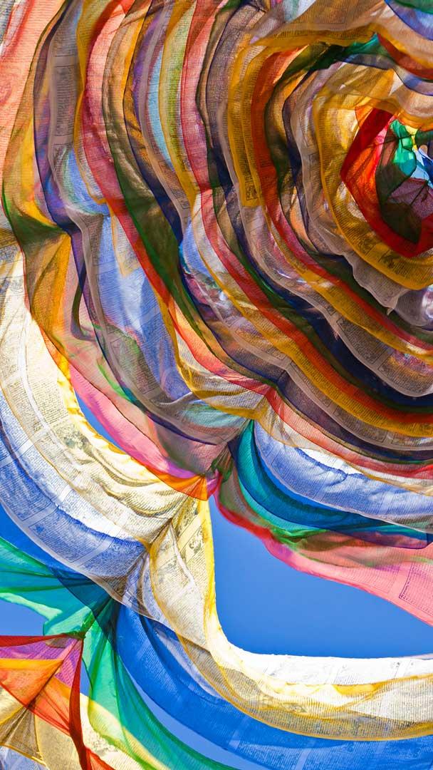 Bienvenue dans la vallée enchanteresse de Phobjikha, au Bhoutan, où une colonne kaléidoscopique de drapeaux de prière danse au gré du vent. Ces étendards colorés symbolisent les forces de la nature, incarnant les gardiens d"une histoire spirituelle fascinante. Les tissus flottants, ornés de prières, se hissent généralement en période prospère, comme lors du Nyinlong, le jour du solstice bhoutanais, célébré aujourd"hui. Au fil du temps, les drapeaux s"estompent et représentent une métaphore pour les croyants : leurs prières, portées par le vent, apportent positivité et spiritualité à la région. En les regardant virevolter, rappelons-nous que même en hiver, l"espoir et la positivité ouvrent la voie à un avenir radieux. Pourquoi ne pas se plonger dans ce tableau vivant de spiritualité et de promesses lumineuses !