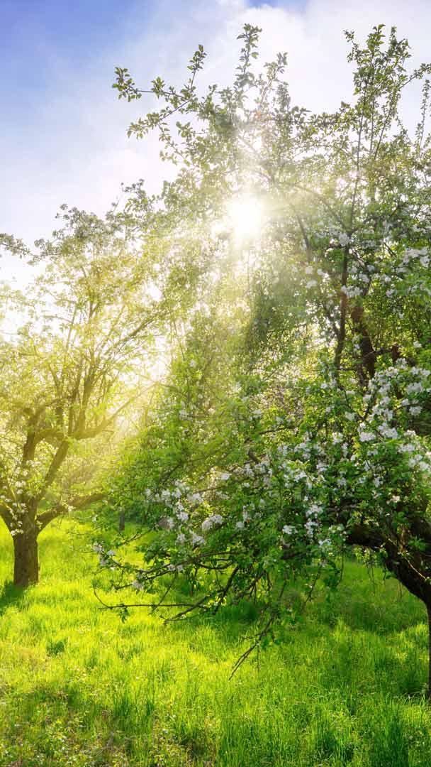 In this picturesque orchard, spring heralds the blossoming of apple trees. As the chill in the air starts to fade, delicate apple blossoms unfurl, releasing a sweet fragrance that permeates the countryside. This marks the beginning of a process that culminates in the harvest of one of the world"s most beloved fruits. Known for their crisp texture and sweet-tart flavour, apples belong to the Rosaceae family. These fruits come in a variety of colours, from vibrant reds to golden yellows and bright greens. Each type boasts its unique flavour profile, from the tangy Granny Smith to the sweetness of Fuji. These fruits are rich in dietary fibre, antioxidants and essential vitamins like vitamin C and vitamin K, promoting overall health and well-being. Whether you like them fresh, baked in your favourite desserts or pressed into cider, apples are a classic culinary delight.