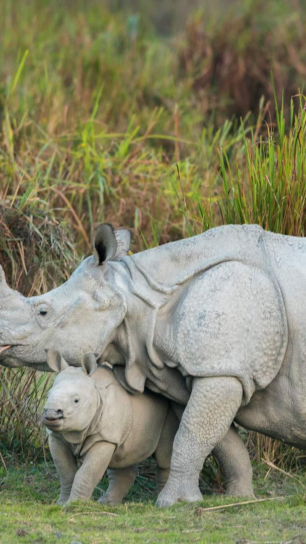 Rhino mother and calf, Kaziranga National Park, Assam © ePhotocorp/Getty Images