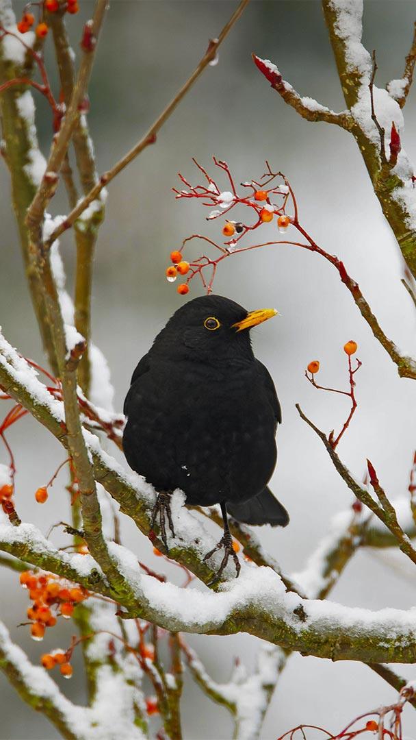 Why are blackbirds tied to winter? Blackbird in Essex, England (© Bill Coster/Alamy)