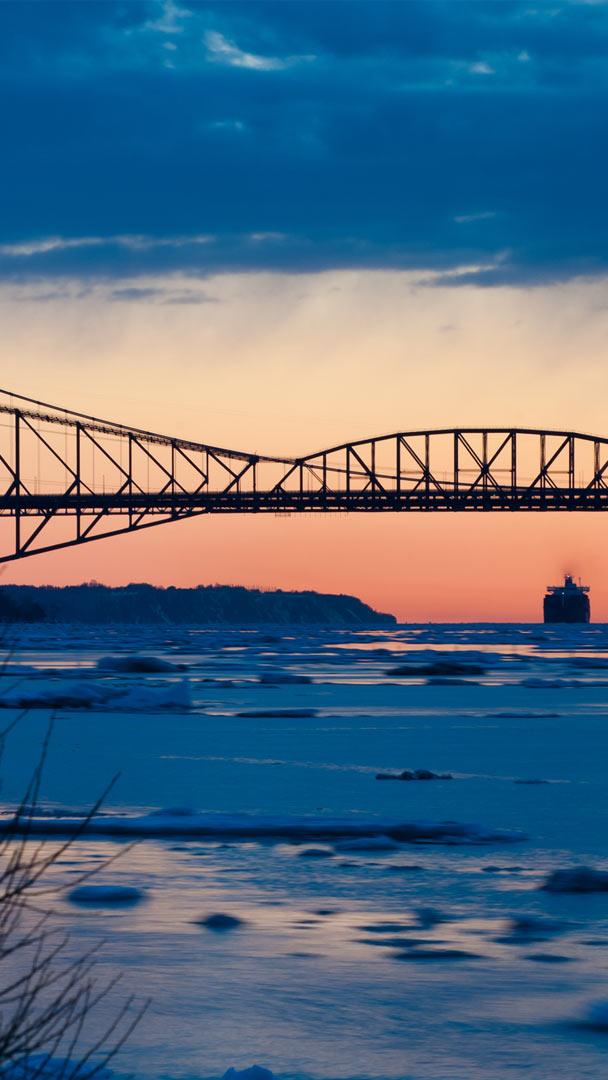 Che splendido tramonto! Ponte del Quebec sul fiume San Lorenzo, Canada (© Ronald Santerre/Getty Images)