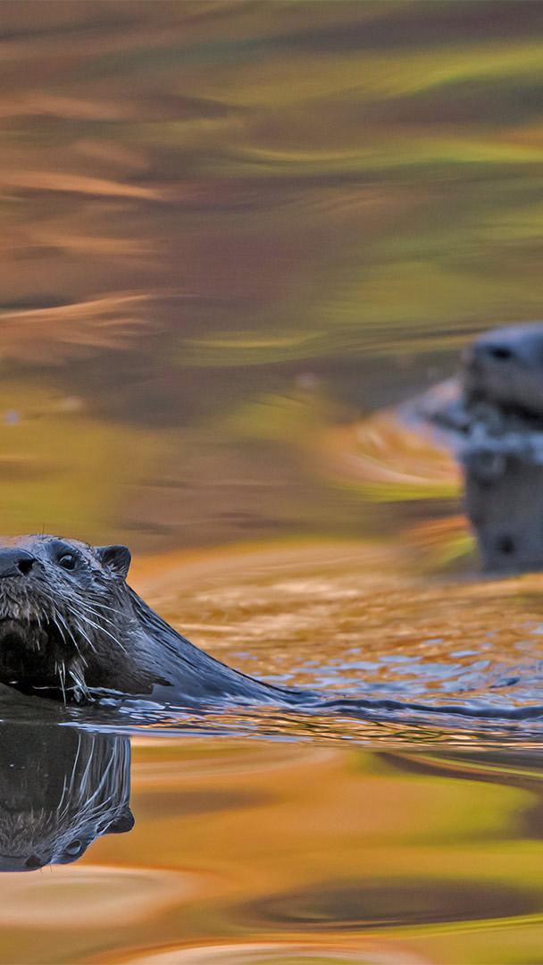 La funzione scientifica delle lontre Lontre canadesi che nuotano nel Parco Nazionale di Acadia, Maine, Stati Uniti (© George Sanker/Minden Pictures)