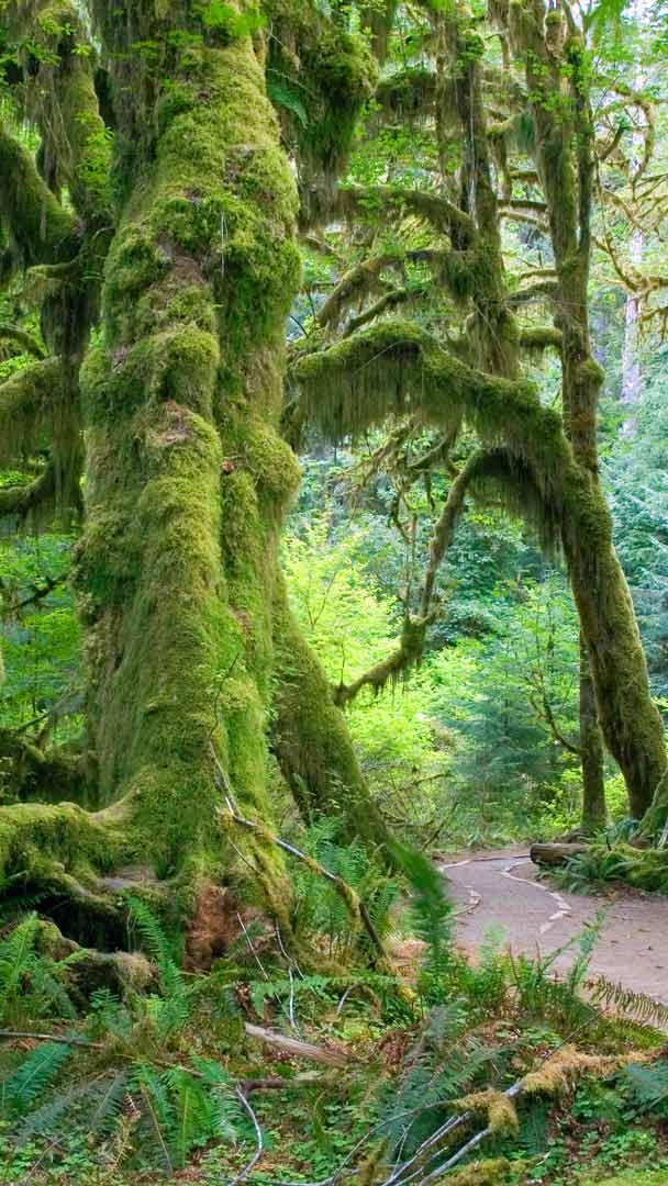 Un diverso modello di foresta pluviale Sentiero Hall of Mosses nella foresta pluviale di Hoh, Parco Nazionale Olimpico, Washington (© James Randklev/Getty Images)