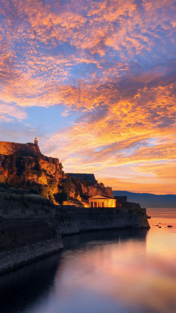 夕日に染まる旧要塞 コルフ島の旧要塞, ギリシャ (© Netfalls Remy Musser/Shutterstock)