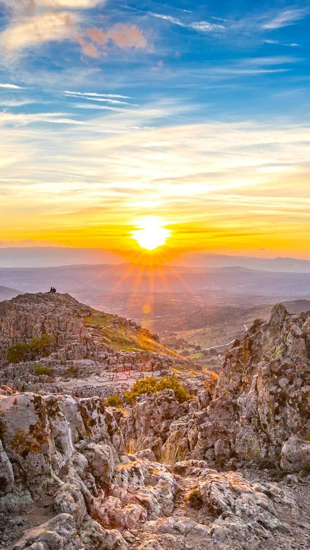 明日 6 月 21 日は夏至。北半球ではこの日が一年で最も昼が長くなり、太陽の南中高度も最も高くなります。ここ、北マケドニアのコキノ古代天文台では、上段の石ブロックが、下段の座席の一つから見たときに夏至の日昇方向を指すようになっています…