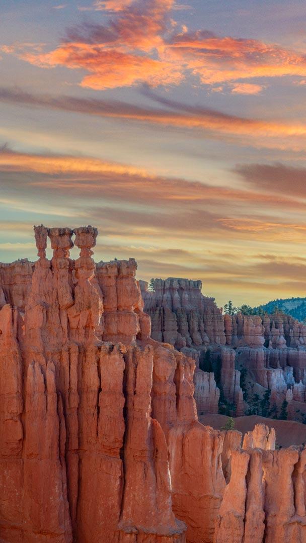 Let"s take a trip to a forest of stones. Sunset Point, seen in today"s image, offers sweeping views of the hoodoos of Utah"s Bryce Canyon National Park. These rock formations are created by frost weathering and stream erosion, which shape the stone into an otherworldly landscape. Perched at 8,000 to 9,000 feet, this overlook offers a panoramic view of rocky spires in red, orange, and white. The most iconic of them is Thor"s Hammer, a hoodoo that overlooks a part of the park known as the "Silent City." The Queen"s Garden Trail, which leads from Sunset Point to Sunrise Point, offers even more vistas and rock formations, including the Queen Victoria hoodoo. According to the legend told by the Paiute Indigenous people who inhabited this area, hoodoos are people who have been turned to stone for their misdeeds by the trickster Coyote. Whether you"re a hiker, a photographer, or simply a traveler, the hoodoos are waiting.